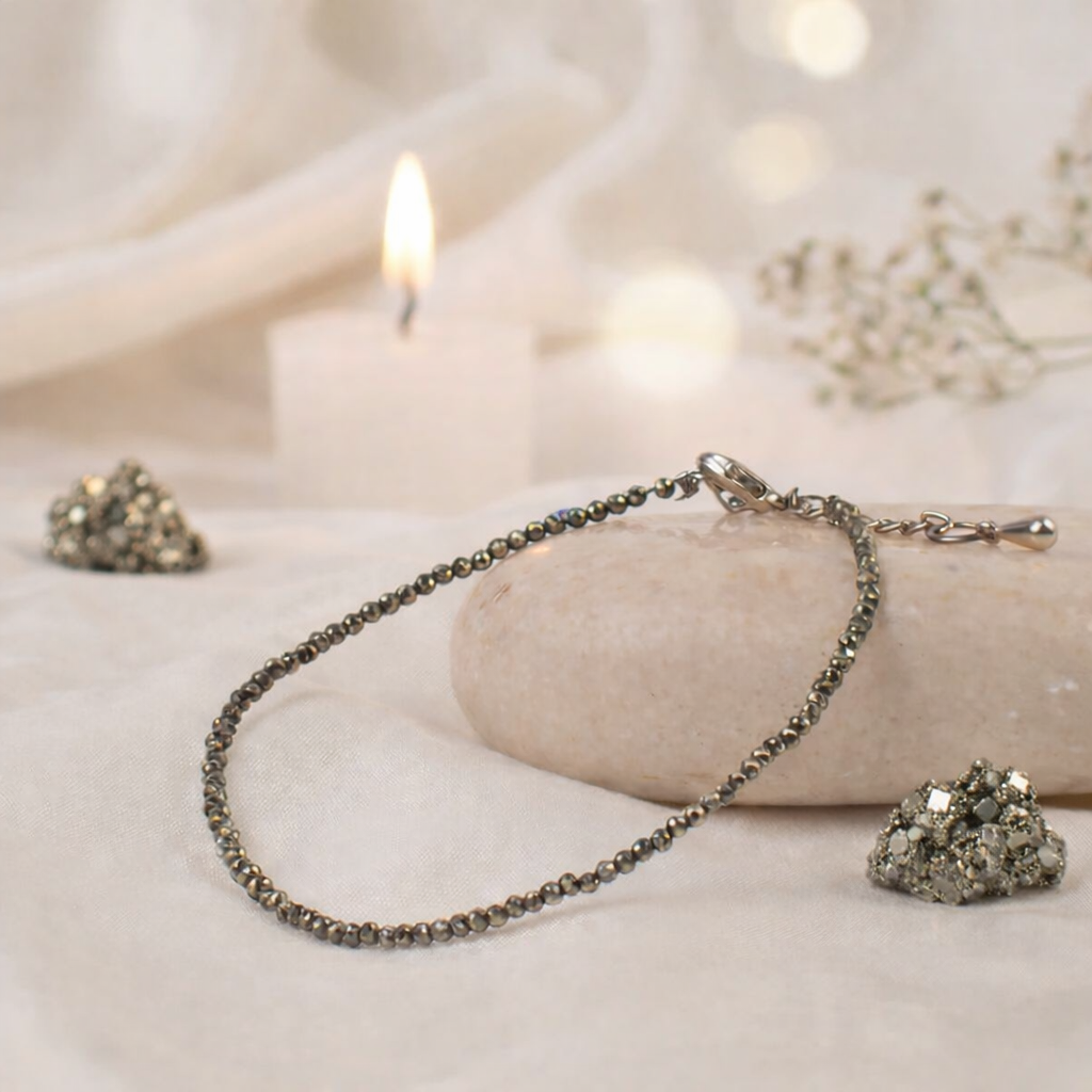 Raw Pyrite Anklet – Elegant & Adjustable