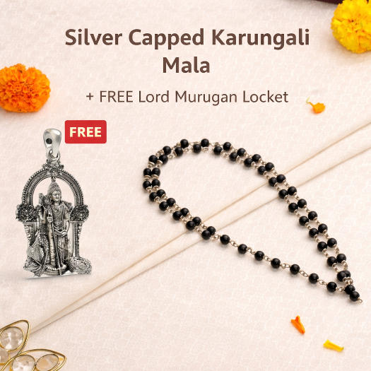Silver Capped Karungali Mala + Free Lord Murgan Locket